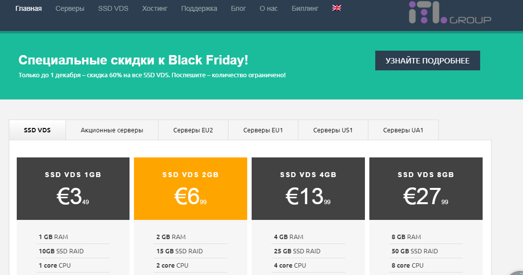 ITLDC,保加利亚主机商,1995成立,在美国有办事处,提供各种主机服务器,VPS数据中心众多,其VPS特色是均为100Mbps端口不限流量。现在黑五有4折优惠,1GB内存,最低年付13欧,力度不错。 优惠码:BLACKFRIDAY201...